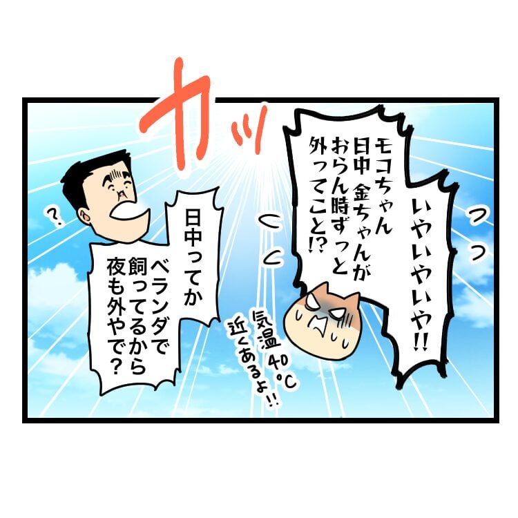 40℃近くある炎天下の日除けないベランダで
